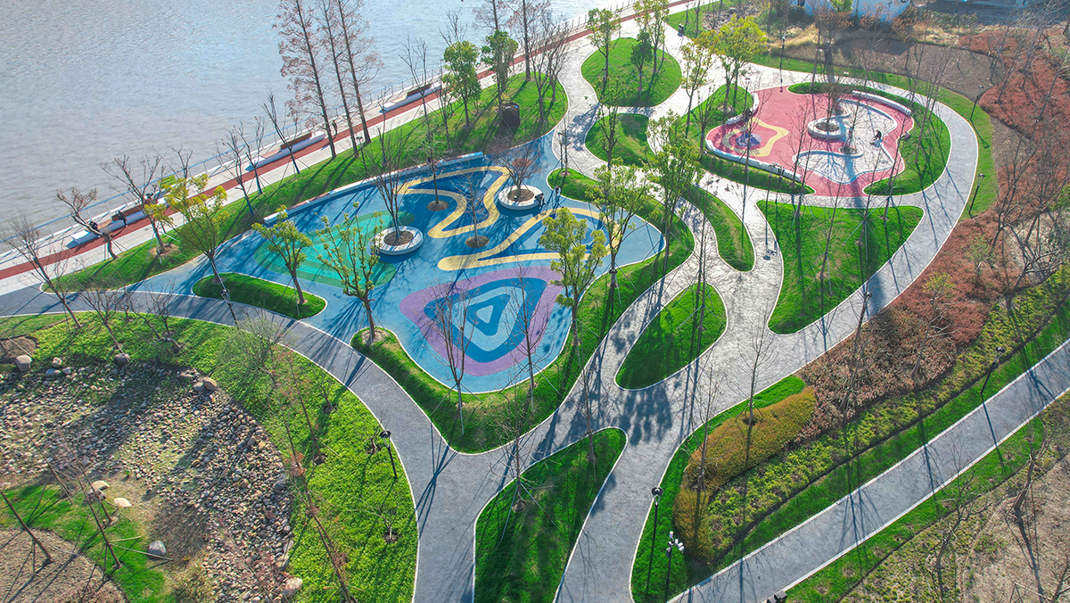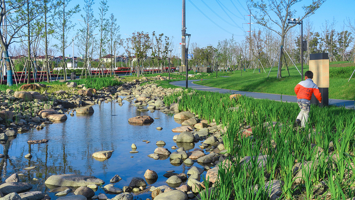 项目秉承“花园水岸、森林漫道”的设计理念,塑造太仓“临沪门户区”的花园绿带与现代田园城市滨河公园样板,公园于2021年2月建成开放。