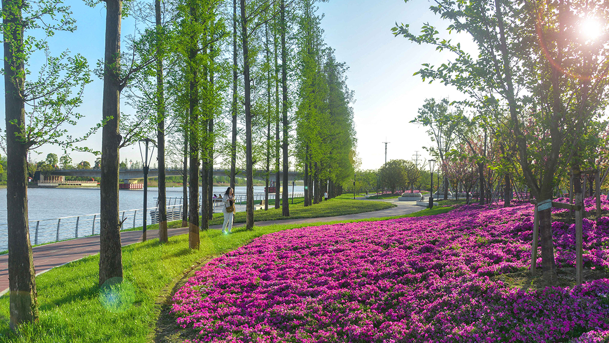 太仓市沿浏河向东发展的娄江新城,是“太沪同城”融合发展的重要区域,滨河公园位于娄江新城南侧,与上海嘉定区仅一河相隔。