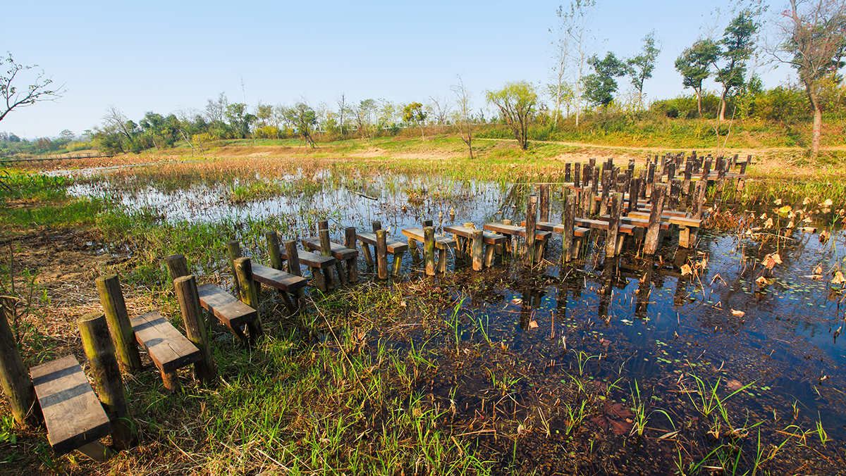 项目位于无锡市太湖国际科技园,滨水岸长达5公里,宽度约300米,总面积约132公顷,是一个狭长的湖滨地带。设计以“生态修复”为理念,再生拥有自净能力的沿岸地形与植被,恢复太湖自然生态系统。