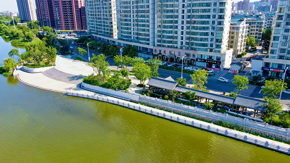 经过两年多的提升改造,南起沟墩镇,北至庙湾的串场河阜宁段面貌焕然一新,形成了一条以蓝绿为底,凝聚文脉特色的生态文化休闲廊道,串联起沿河两岸的广场、口袋公园与历史文化点,为当地居民及游客提供了一处休闲游玩、亲水慢行的共享开放空间。