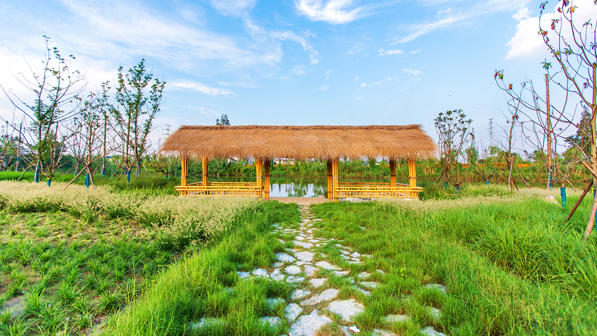 田园风光段——保留了部分风貌较好的滨水农居院落,以碧水、绿林、良田作为生态大背景,展现临水而居、依水而作的生活场景。同时,结合编织小品来展示施庄的诗情画意,展现历史底蕴。