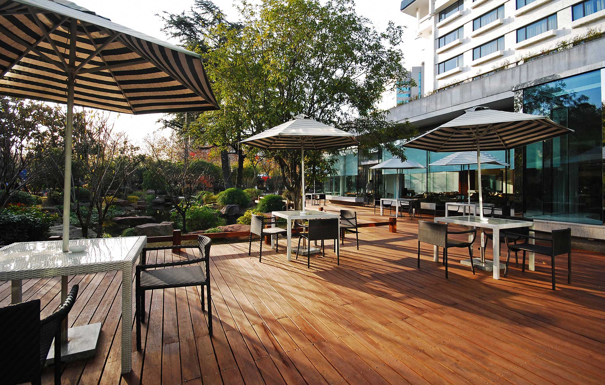 杭州黄龙饭店改扩建工程的庭院设计,继承了原有庭院传统山水园林的风格,结合现代高品质酒店的功能需求,巧妙运用水的元素,使新建改建区域在独立成景的前提下,保持与经典的中心庭院内在的基因联系。同时注重城市交通干道与酒店的边界处理,外部空间与内部景观既有隔离又有联系,使处于闹市中的五星酒店有大隐隐于市的气质。
