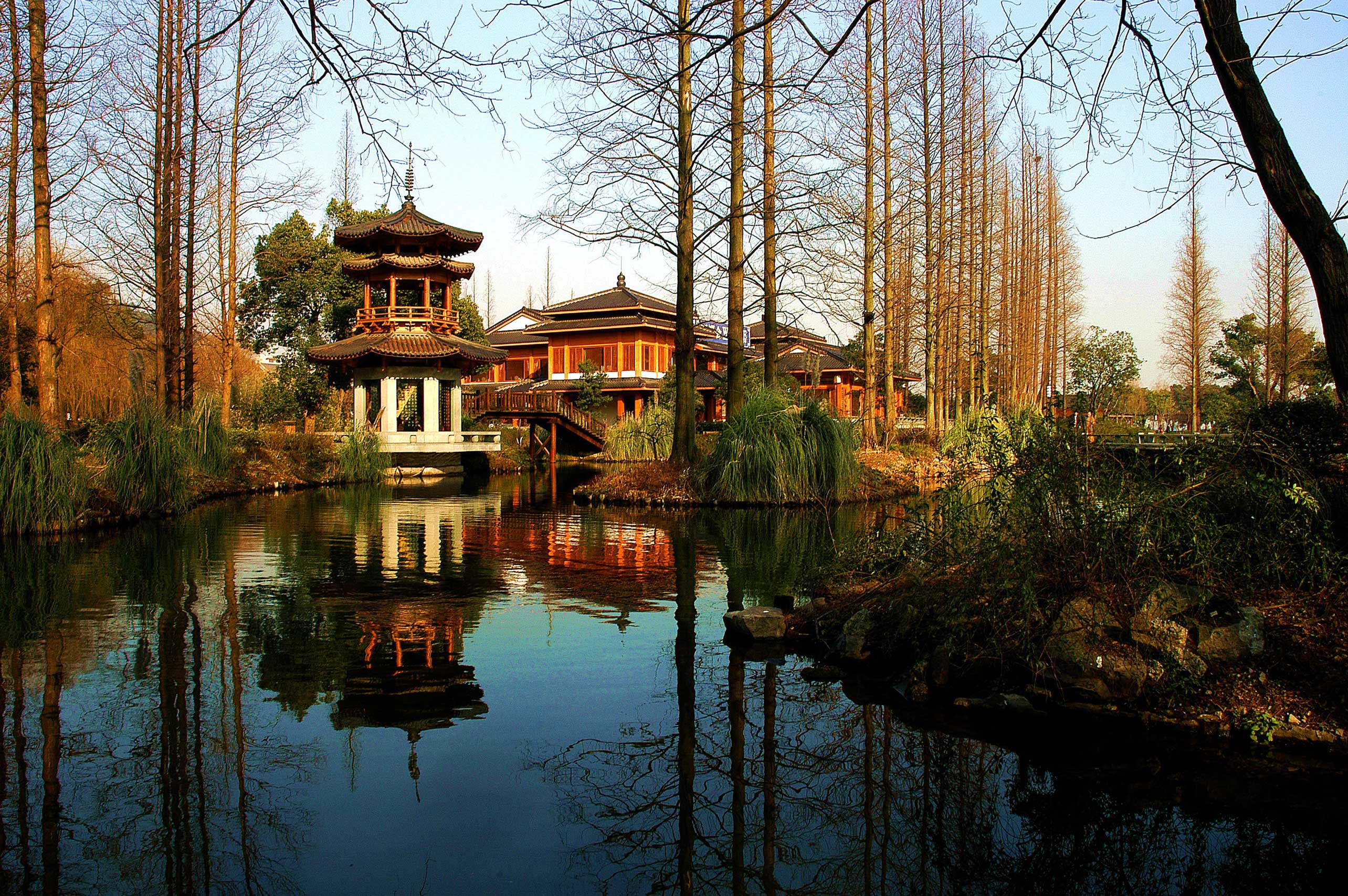 酒文化坊是湖西综合保护工程中对曲院风荷进行调整完善的一处新景点。设计以绿为主,整体构思是紧扣“曲院风荷”主题,再现“接天莲叶无穷碧,映日荷花别样红”的景观,使人陶醉在一个荷香与酒香四溢的环境里,处处充盈着荷文化和酒文化。所有建筑物都和谐地融入环境,风格上既有历史的传统性,又有现代生态园林的新鲜感。园林空间有明快开朗的特点,设计中处处考虑以人为本,满足人们对于大自然的渴望和追求,力图创造出一方夏日观荷品茗的环境,通风荫凉的休闲世界。
