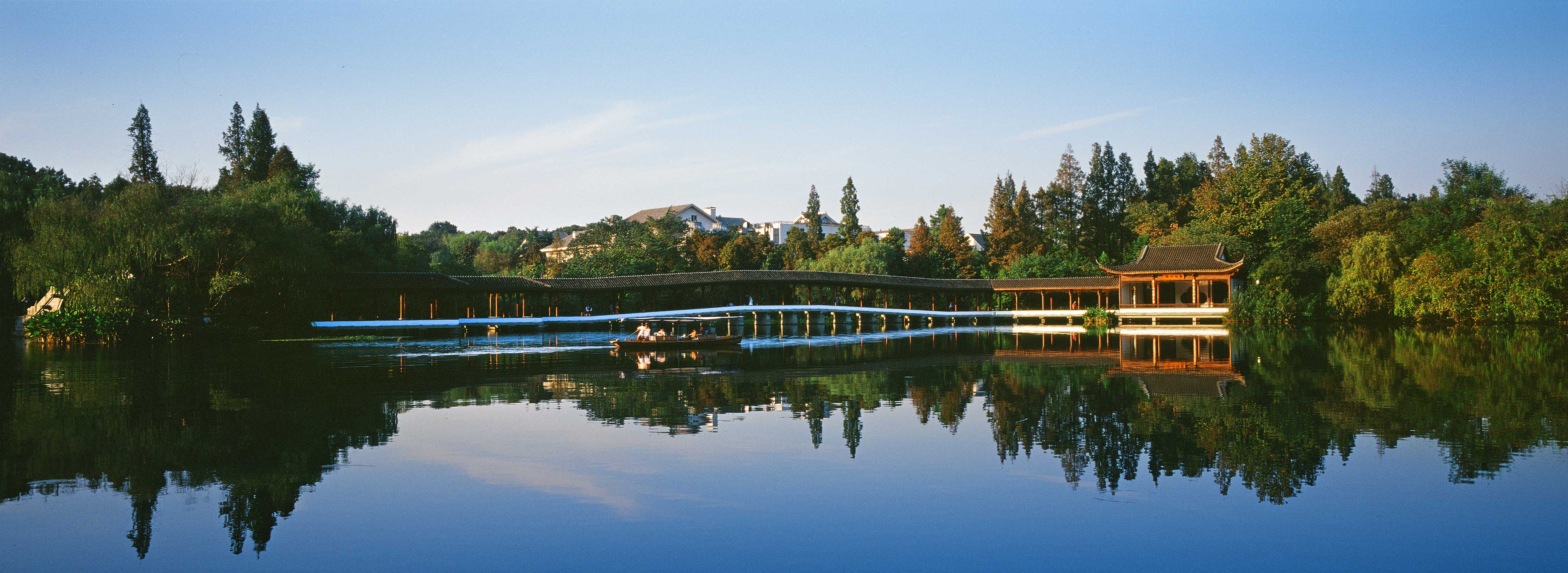 位于三台山景区最南端,通过水道与乌龟潭相连,又经濬源桥及花港公园内水港与小南湖贯通。浴鹄湾湖面聚散开合,岸线曲折有致。水面上几座为保存原有乔木而留下的小岛将全湾分割成内外两部分,外湾连通西湖,内湾平静无波。对沿岸名人故迹进行了恢复,为此处增添了丰厚的人文气息。