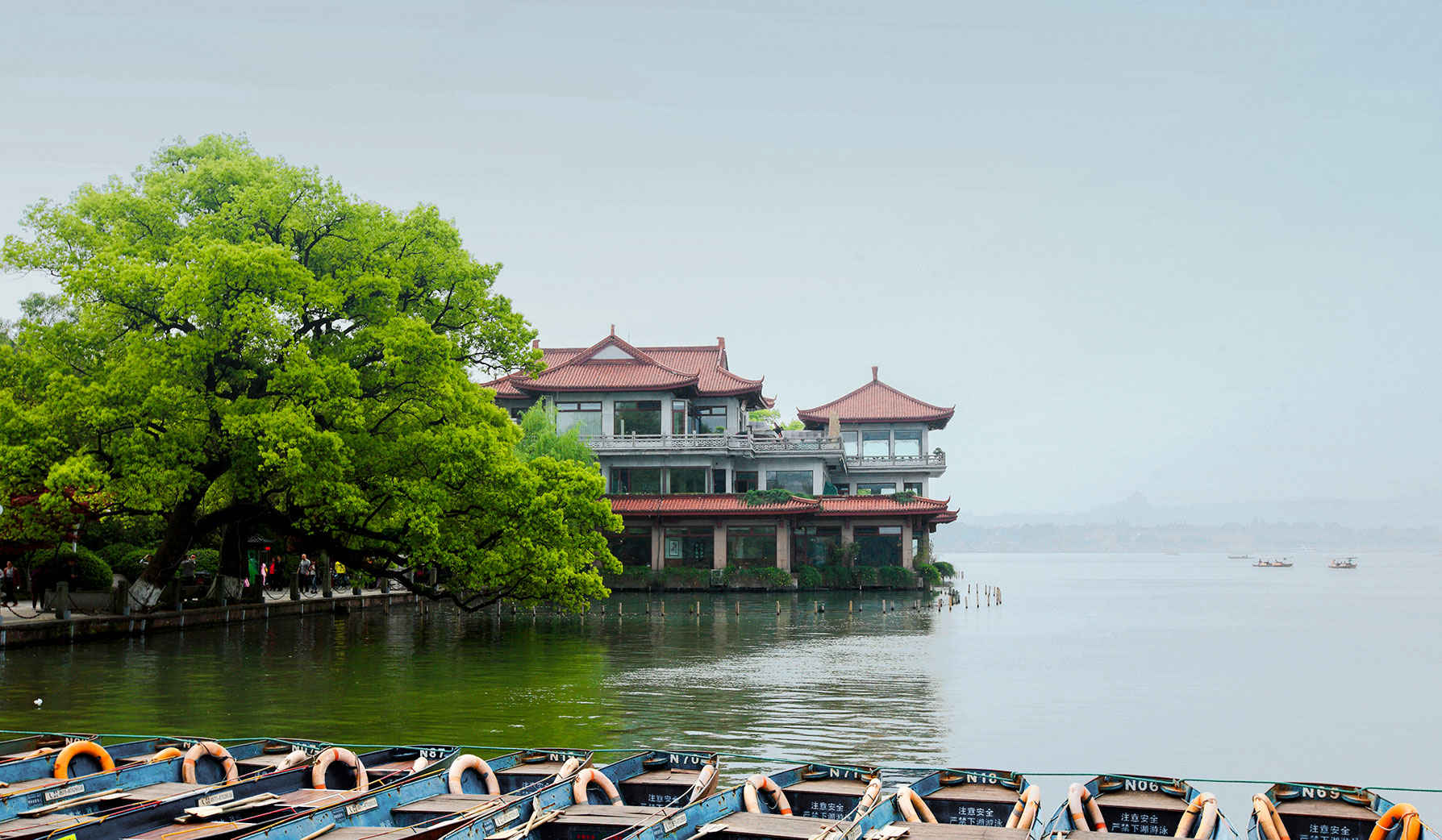 杭州湖畔居位于西湖六公园北侧,临湖而立,湖光山色共一楼。建筑局部三层,传统歇山屋顶错落有致,外立面干挂浅色石材,大玻璃窗,临湖有大露台。建筑与环境相融共通,是欣赏西湖风景的绝佳场所。“湖畔品龙井,人在天上行”,一杯香茗在手,聆听江南丝竹,茶文化的风情雅趣尽在其中。