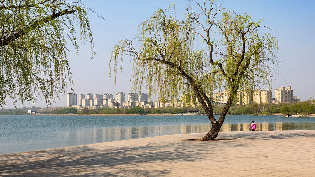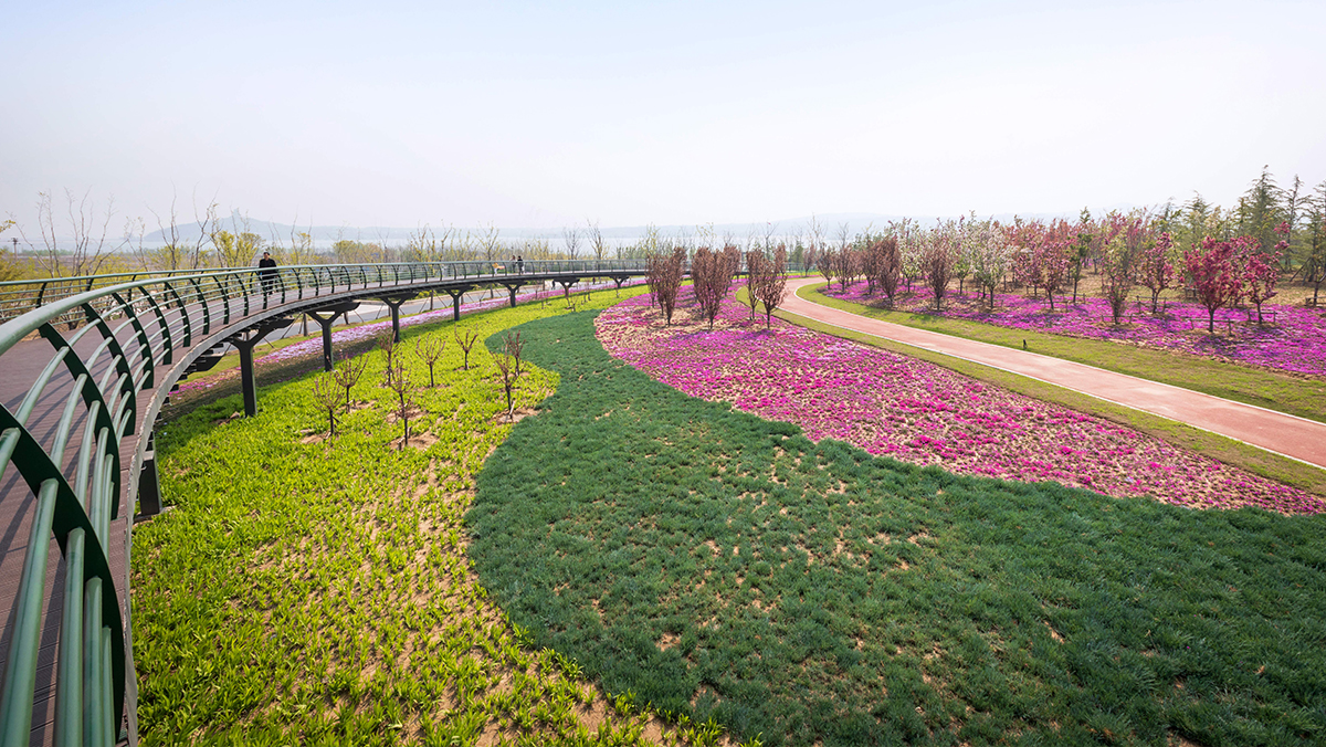环湖公园规划设计充分落实上位规划确定的总体生态结构,形成“绿链绕湖,珠落玉盘,湖城相映,山水相融”的整体空间结构。设计以层次丰富的环湖绿道体系为纽带,串联生态空间及与点状滨湖活动空间,营造绿入城中,人在绿中的美好滨水环境。