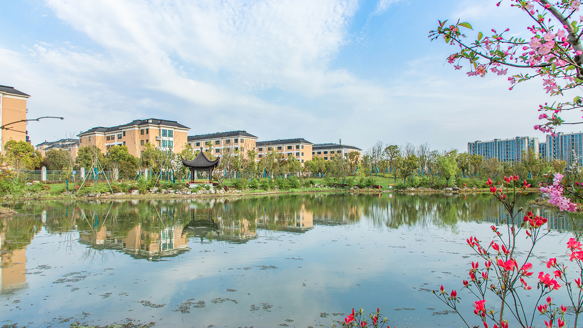 设计立足防洪排涝,改善水环境、水生态,打造自然野趣又富有诗情画意的郊野公园。通过保留场地的自然元素,构建“一带、两山、三区”的空间结构。连通内外水系,打造自然岸线,构建密林、草地、水岸等不同生境,形成区域的生态基底。灵山路贯通公园,形成景观性的交通通廊,绿地结合水系、游步道,亭廊的设置,并注重植物群体的景观营造,形成道路两侧花成片、草成坪、树成荫的壮阔景观。