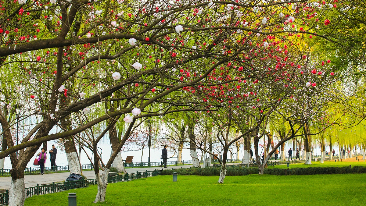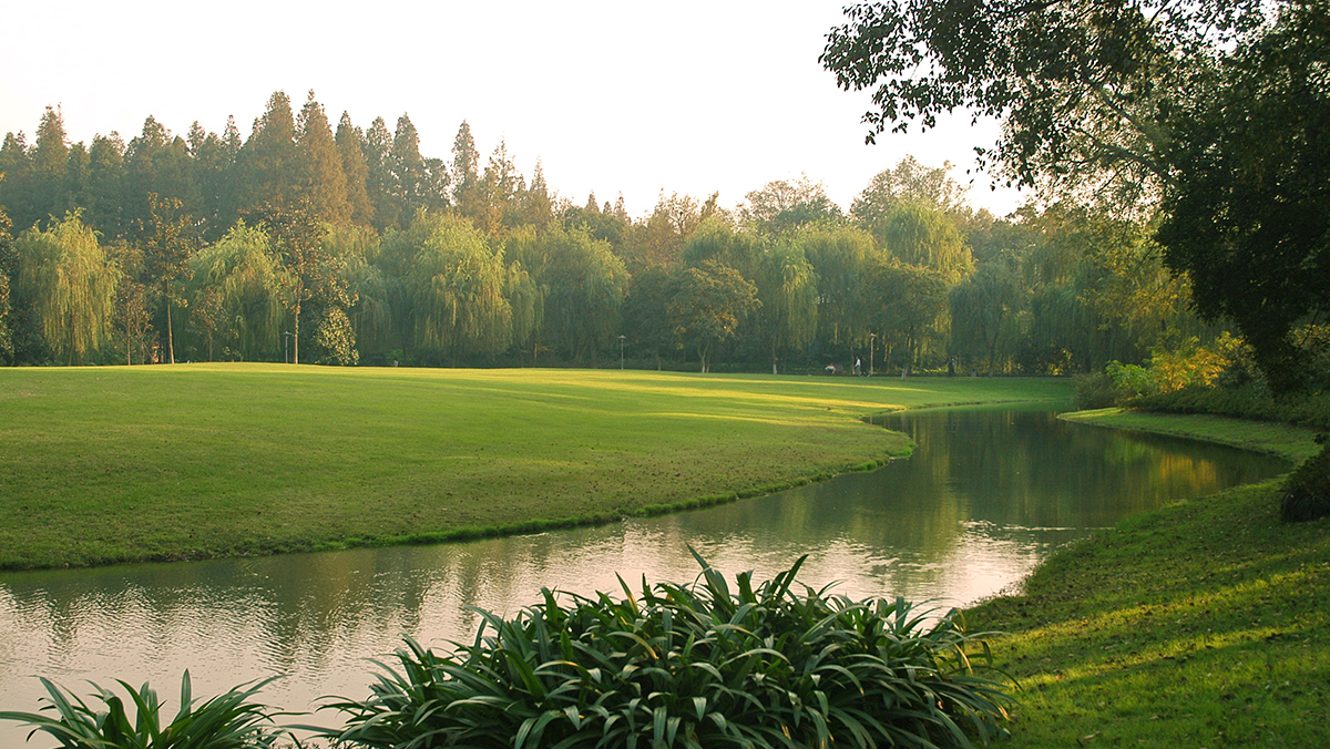 “柳浪闻莺”是西湖十景之一,是西湖边的观景佳地。园内开挖水体,改造地形,梳理植物,形成了大片草坪、疏林草地、密林相间的公共绿地。水边绿草如茵,远处乔木如峰峦般起伏,林下繁花锦簇,景观清新、雅致。柳浪闻莺在继承传统造园手法的同时,力求创新,在园林空间布局、园林植物配置等方面,探索了新的内涵和表现形式,形成融于西湖自然山水并符合新时期公共游赏休闲的新园林。