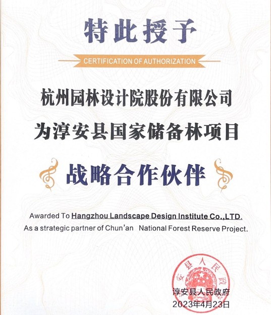 4月23日,淳安县林业共同富裕试点县暨国家储备林项目建设推进大会隆重召开,淳安国储林项目全面启动,淳安县人民政府为公司颁发了国储林项目战略合作伙伴证书。