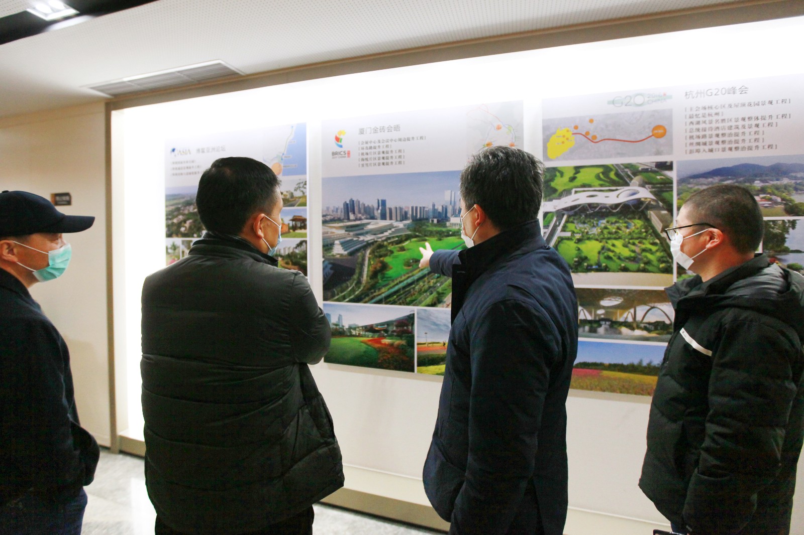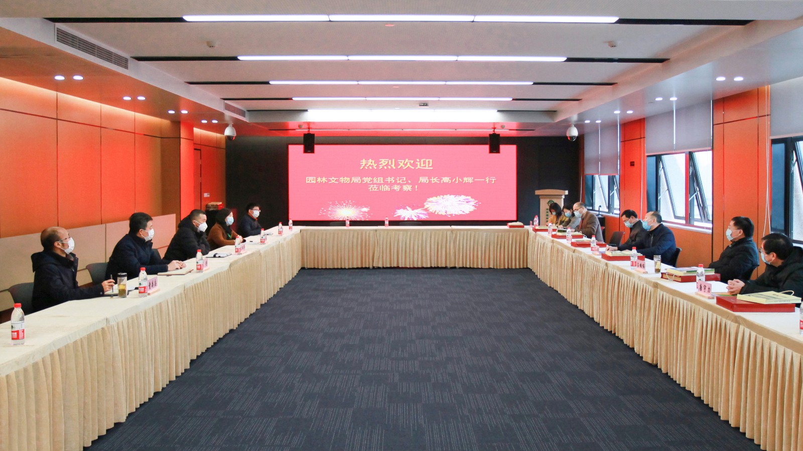 3月3日下午,园林文物局党组书记、局长高小辉率队莅临我院考察。杭州园林设计院股份有限公司董事长兼总裁吕明华、副总裁兼设计集团总经理李永红、副总裁兼生态环境集团总经理葛荣、副总裁童存志、董事会秘书伍恒东、行政综合部部长陈晨出席会议。