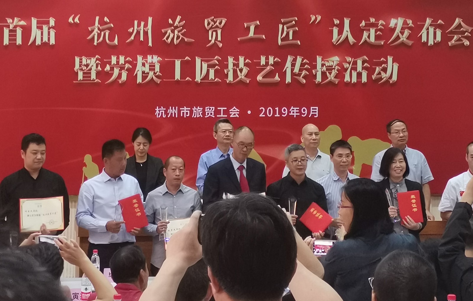 2019年9月22日上午,杭州市旅贸工会首届“杭州旅贸工匠”认定发布会暨劳模工匠技艺传授活动顺利召开。杭州园林设计院股份有限公司李永红 同志荣获首届“杭州旅贸工匠”荣誉称号!