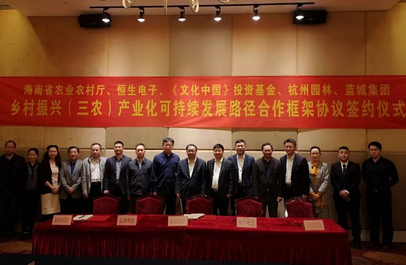 近日,由我公司和恒生电子股份有限公司、《文化中国》投资基金管理有限公司、蓝城房产建设管理集团有限公司共同组成的企业联合体,与海南省农业农村厅正式签订了《乡村振兴(三农)产业化可持续发展路径合作框架协议》。公司副总裁葛荣出席了签约仪式。