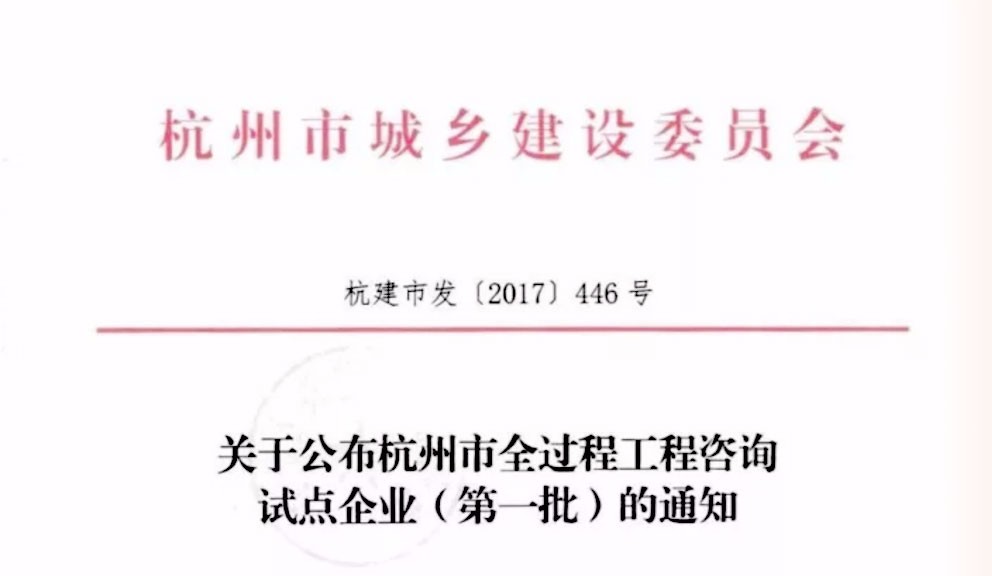 近日,杭州市住房与城乡建设委员会下达了“关于公布杭州市全过程工程咨询试点企业(第一批)的通知(杭建市发【2017】446号)”和“关于公布杭州市工程总承包试点企业名单(第一批)的通知(杭建市发【2017】447号)”,我院成功入列这两个名录。