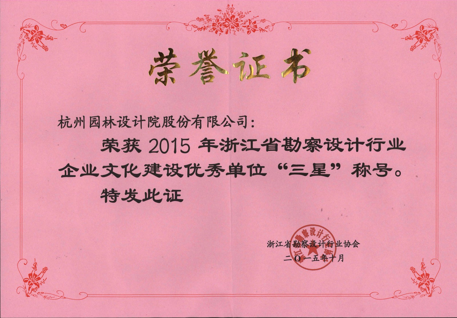 2015年10月,浙江省勘察设计行业协会企业文化建设优秀单位评选结果揭晓,我院荣获浙江省勘察设计行业企业文化建设优秀单位称号。